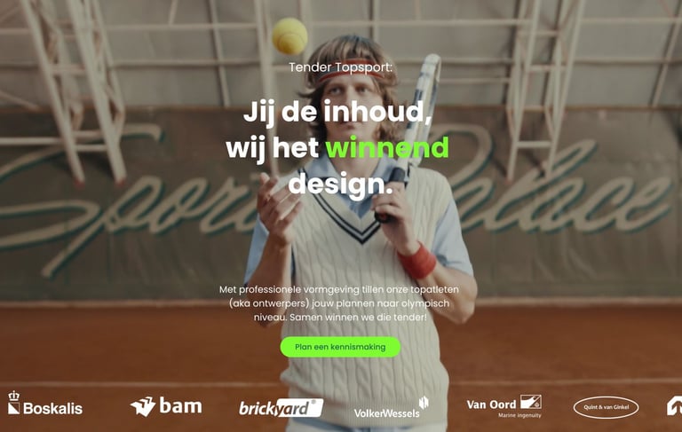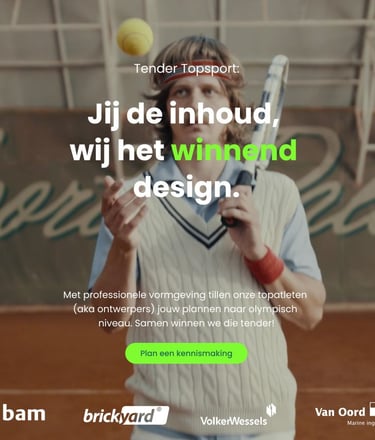 Vanaf de eerste brainstorm tot aan de laatste pagina zorgen we als tenderdesign bureau voor een krachtige vertaling van jouw plannen — zodat jij opvalt, overtuigt en wint.